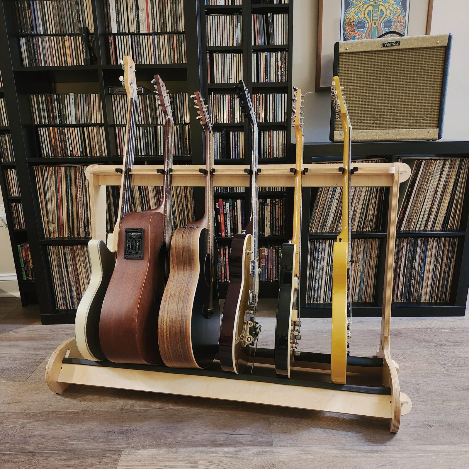 Tired of your music room or studio being a mess? Many cheap, foreign-made multiple guitar stands claim to fix the problem, but they often look bad and break easily. Or worse, use materials that could damage the delicate finishes on your instruments.