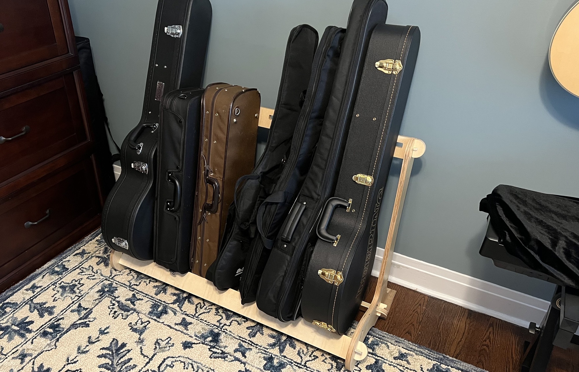 This is just what I needed. A place to store all my cases vertically along with the guitars outside the case, ready to go if needed. The rack is very well designed and everything slots together quickly without screws. Good quality thick multi-layer plywood and simple light finish. Great product!!